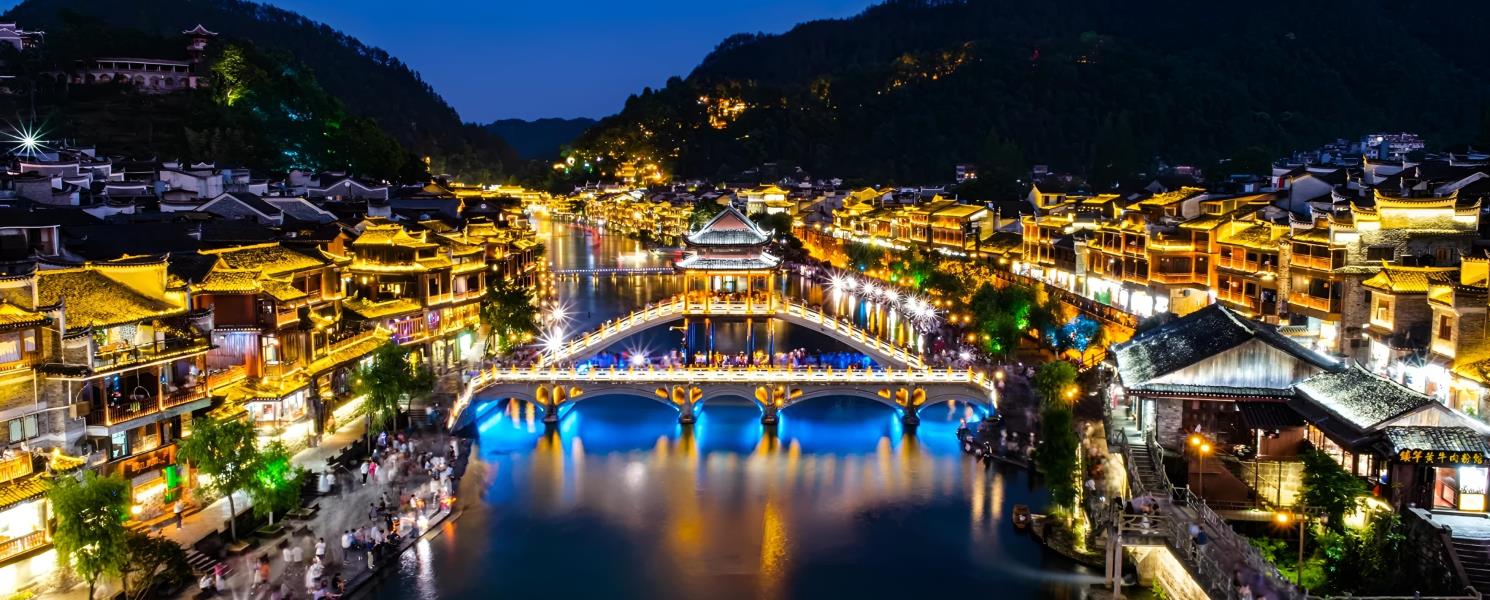 沱江夜船遊是鳳凰古城最迷人的體驗之一,乘船上欣賞古城景色,沱江穿城而過,江水清澈見底,沿江兩岸是極具湘西民族特色、百年歷史的吊腳樓,乘船緩緩穿梭於燈火輝映的吊腳樓與古橋之間,欣賞江岸夜色與倒影交織的詩意畫面。