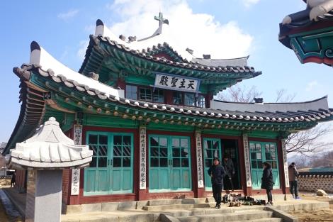 是大韓聖公會首爾教區的一座主教座堂,位於韓國仁川廣域市江華郡,也是江華島上的第一座教堂,內部是西洋式的建築設計風格,而屋頂則是韓屋設計,聖堂內部使用很華麗的燈飾高掛著,很有莊嚴感。