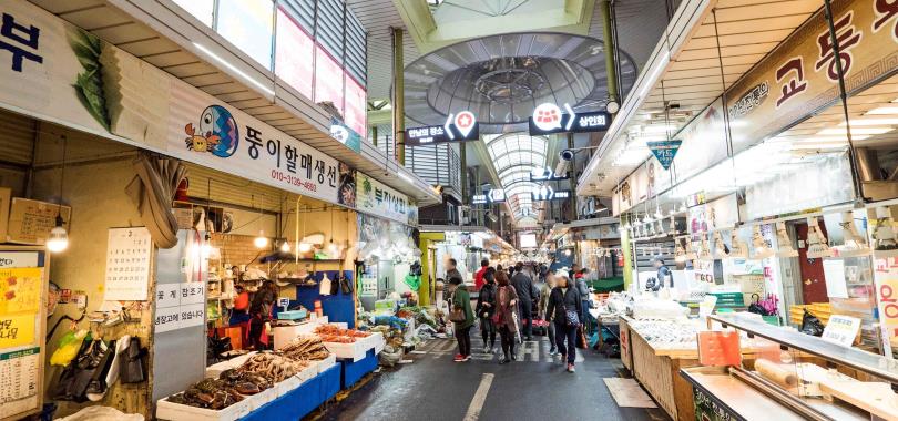 擁有40多年傳統的望遠市場是首爾代表性傳統市場,這裡主打讓遊客僅用少量金錢就能幸福的享受美味的食物。 可以品嘗辣雞塊、 和來自黃仁浩的元堂手工可樂餅的人氣小吃香噴噴的可樂餅,和甜甜圈皆是望遠市場有名的美食。