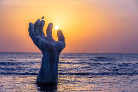 相生之手(浦項最具代表性的地標)1999年6月由嶺南大學金勝國教授製作,右手高8.5公尺、重18公噸,左手高5.5公尺、重13公噸,是為了慶祝千禧年,表達對未來的期盼。相生之手是國家辭舊迎新活動,同時為虎尾岬迎日節的象徵物。